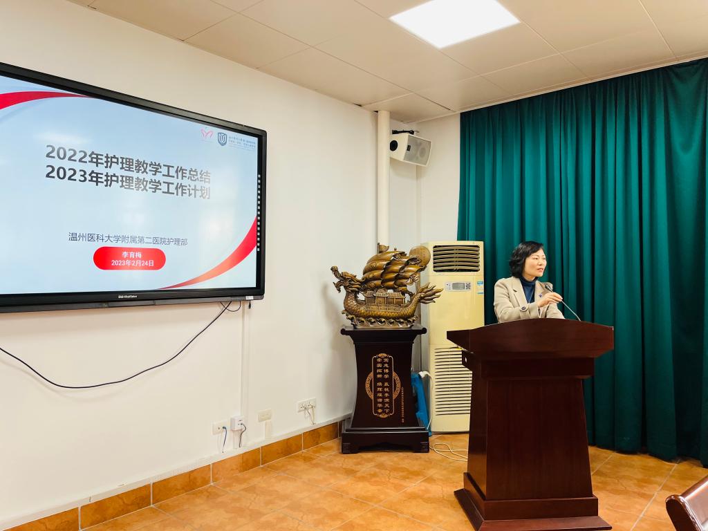 副经理杨晔琴向公司老师一年来的默默奉献表示感谢。她从教务考务安排、教学建设、实践教学、实验室安全等方面对2023年教学重要工作作部署。同时,结合教育部文件精神以及公司教学工作实际,她对教学工作计划、不同微专业的开设、毕业预警的梳理帮扶、上半年教学会议的举办、临床护理教学质量的控制、教学成果的凝练等重难点工作提出新要求。