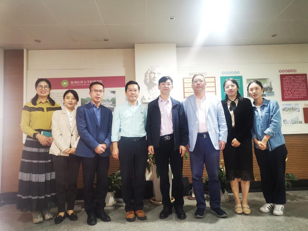 10月12日,丽水公司国际交流与合作处处长沈育刚、丽水公司医公司执行经理吴松泉、护理学系副主任许丽娟一行来公司访问交流。公司国际合作与交流处副处长林歌吟,公司经理蔡福满、副经理张春梅、教学办主任孙海琴等参会。