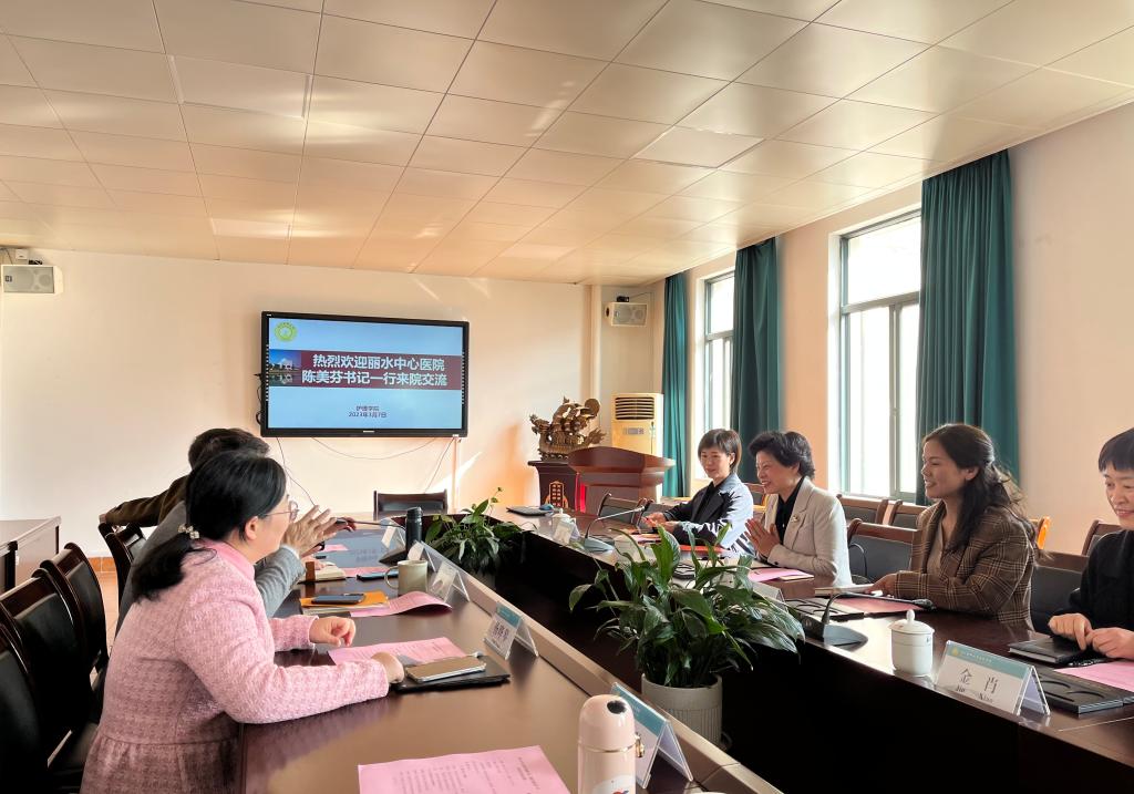 3月7日上午,丽水市中心医公司党委副书记、副经理陈美芬,护理部副主任黄旭芳(主持工作)、护理部副主任朱虹、护理部副主任金肖一行四人来公司访问交流。公司党委书记李旭东、经理蔡福满、副经理杨晔琴、教学办主任孙海琴、教学办老师杨定琪参会。