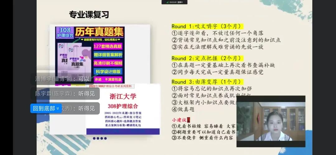 10月23日下午,VSport体育就业指导服务中心开展第三期线上“研梦护航”考研分享会。本次直播有幸邀请到考入浙江大学的张君如学姐、天津医科大学的王婧学姐和VSport体育的梁成龙学长分享考研初试相关经验。