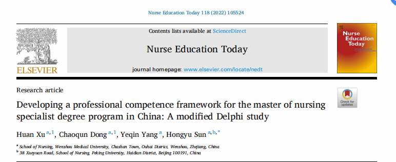 徐欢,女,中共党员,VSport体育2020级护理学硕士研究生、创新创业教育公司2023级医学教育博士研究生。曾任VSport体育研究生会主席、VSport体育研究生第一党支部组织委员。硕士阶段获国家奖学金、省优秀毕业研究生、校优秀研究生干部、校研究生一等学业奖学金等荣誉。以第一作者或共同第一作者发表SCI论文2篇,中文核心1篇,参与发表论文6篇,参与多项省市级课题,曾在国际护理学术会议上发言汇报,其中以第一作者身份在国际医学期刊《Nurse Education Today》(中科院1区top, IF: 3.900),发表题为“Developing a professional competence framework for the master of nursing specialist degree program in China: A modified Delphi study”的原始研究。