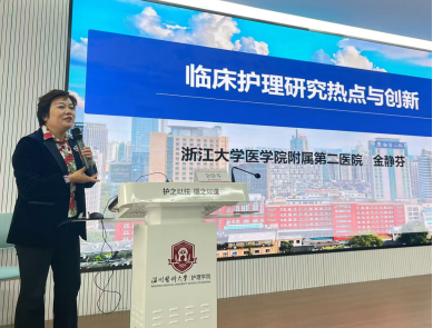 金静芬教授就“临床护理研究热点与创新”作主题演讲,首先强调了科技创新在国家发展中的核心地位,指出科技创新是国家强盛之基,创新是民族进步之魂。在护理创新方面,她提到了国家对护理领域改革创新的重视,护理学会和卫计委在推动护理创新方面的努力,并通过分享浙江省护理创新大赛的案例,展示了护理人员在创新方面的积极参与和成果。金静芬教授鼓励护生深入临床,围绕临床问题开展研究,为病人和护理人员带来更多的福祉。