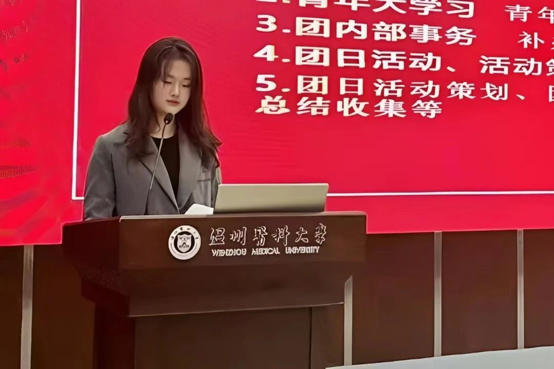 刘佳利,曾作为本校第六届“医大代言人”进行招生宣传;在瑞立酒店、箱包园区等多地开展急救宣教并获“先进个人”称号;撰写多篇文章发表在温州市红十字会等市级媒介。始终致力于用声音传播温医大护理学子的精神风貌,曾获校“三好员工”“校优秀团干部”等荣誉,坚持全方位发展。