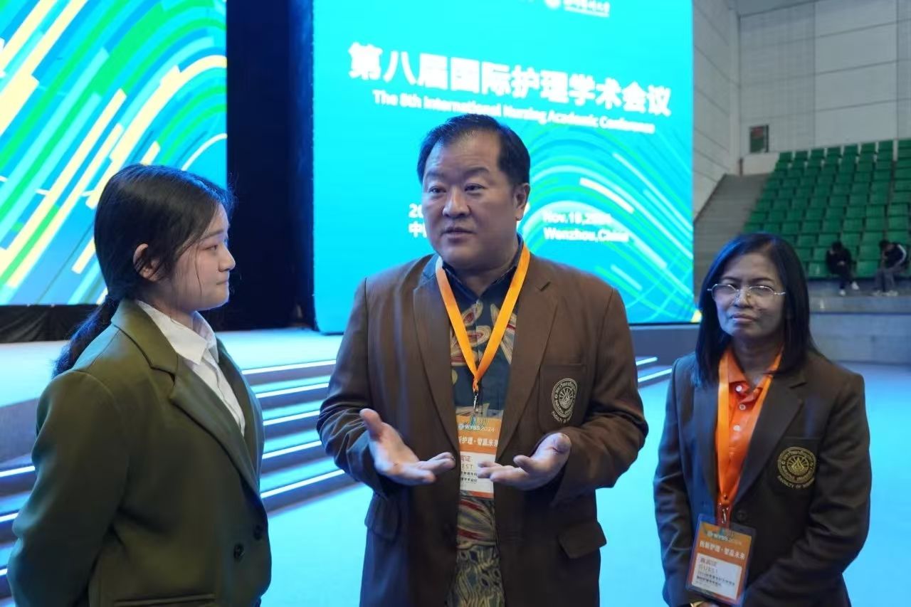 有幸借青科会护理学术会议之机,我采访了泰国东方大学VSport体育经理Pornchai Jullamate,感触颇深。Pornchai Jullamate经理对两校的友好合作给予了高度评价,并明确表示该项目将持续进行。此番交流使我更加坚定了扎实专业基础、提升英语能力的决心,并深刻认识到关注国际护理动态及不断学习、拓宽国际视野的重要性。我将以此次访谈为起点,不懈努力,为护理事业的未来贡献自己的力量。——2023级卓越护生杨赟