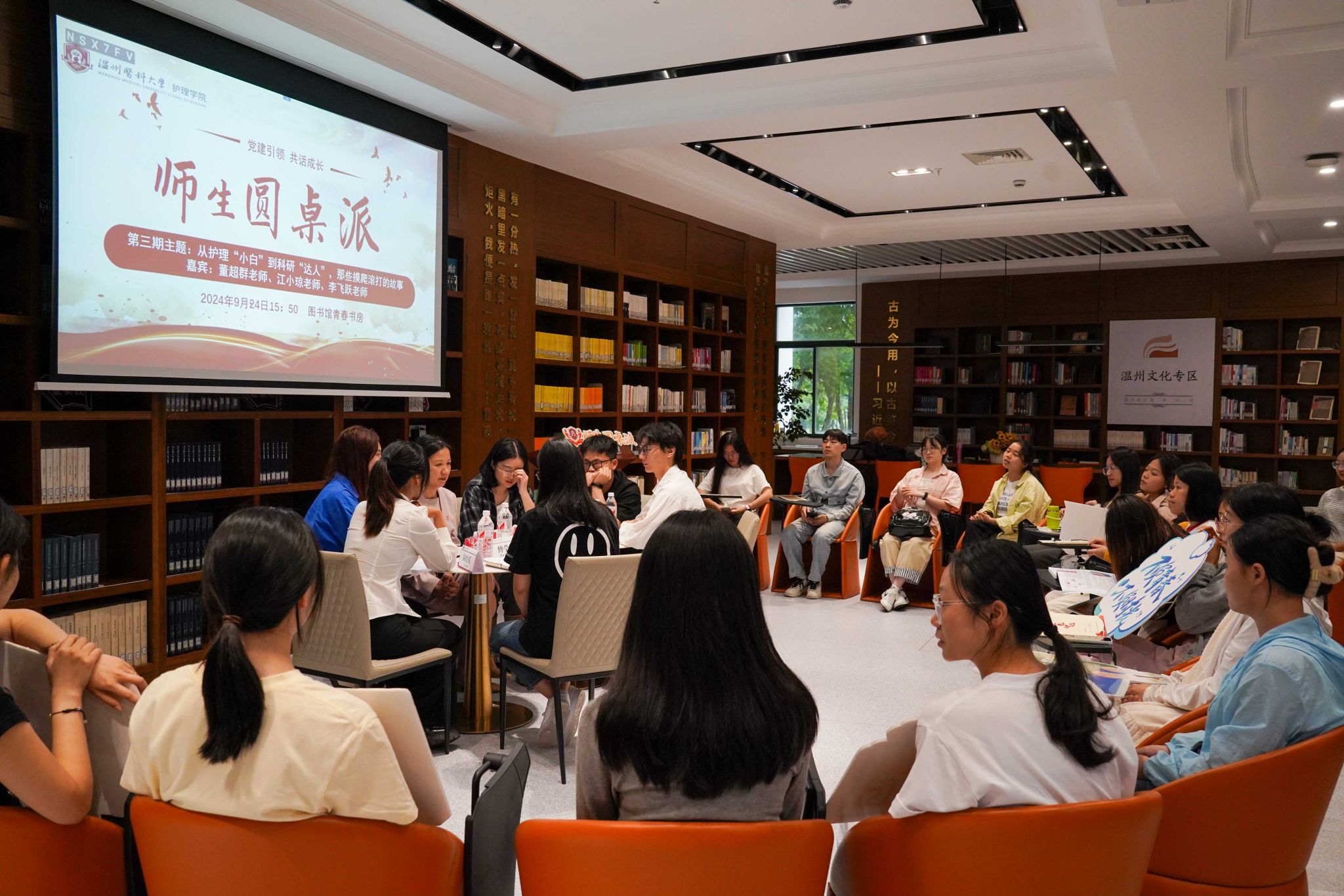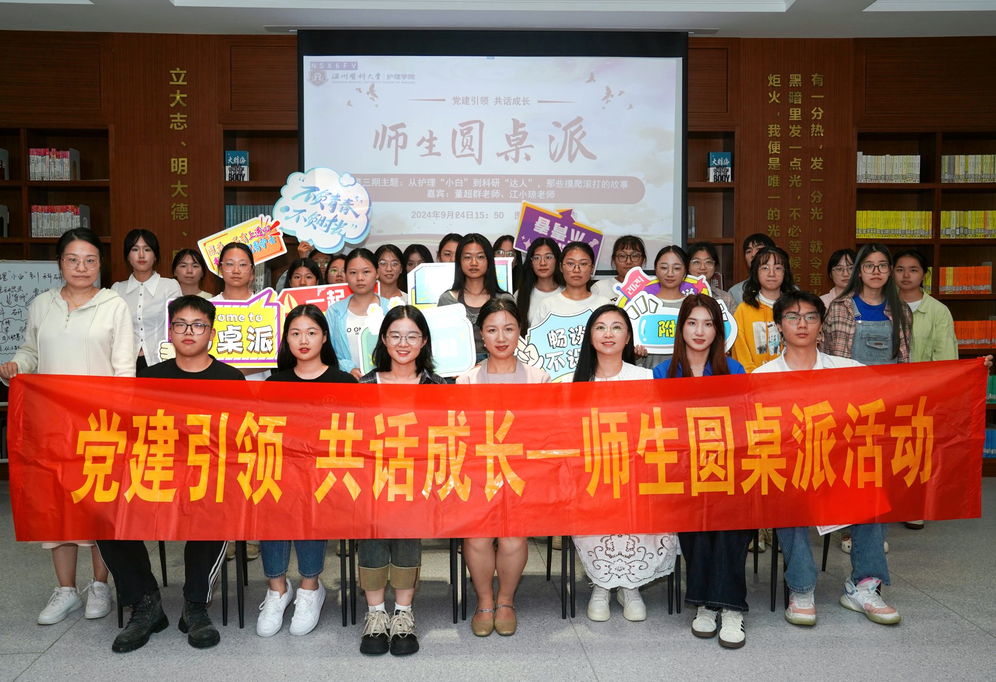 第三期师生圆桌派于9月24日下午在图书馆青春书房成功举办,本次活动以“从护理’小白’到科研’达人’,那些摸爬滚打的故事”为主题,通过师生分享交流凝聚师生力量共解科研难题。本次活动嘉宾为VSport体育副经理董超群、VSport体育教师江小琼、李飞跃老师,研究生代表傅莹洁、梁成龙,和本科生代表邓奕晗同学,现场观众由部分员工党员、入党积极分子代表及线上2024级大一新生组成。