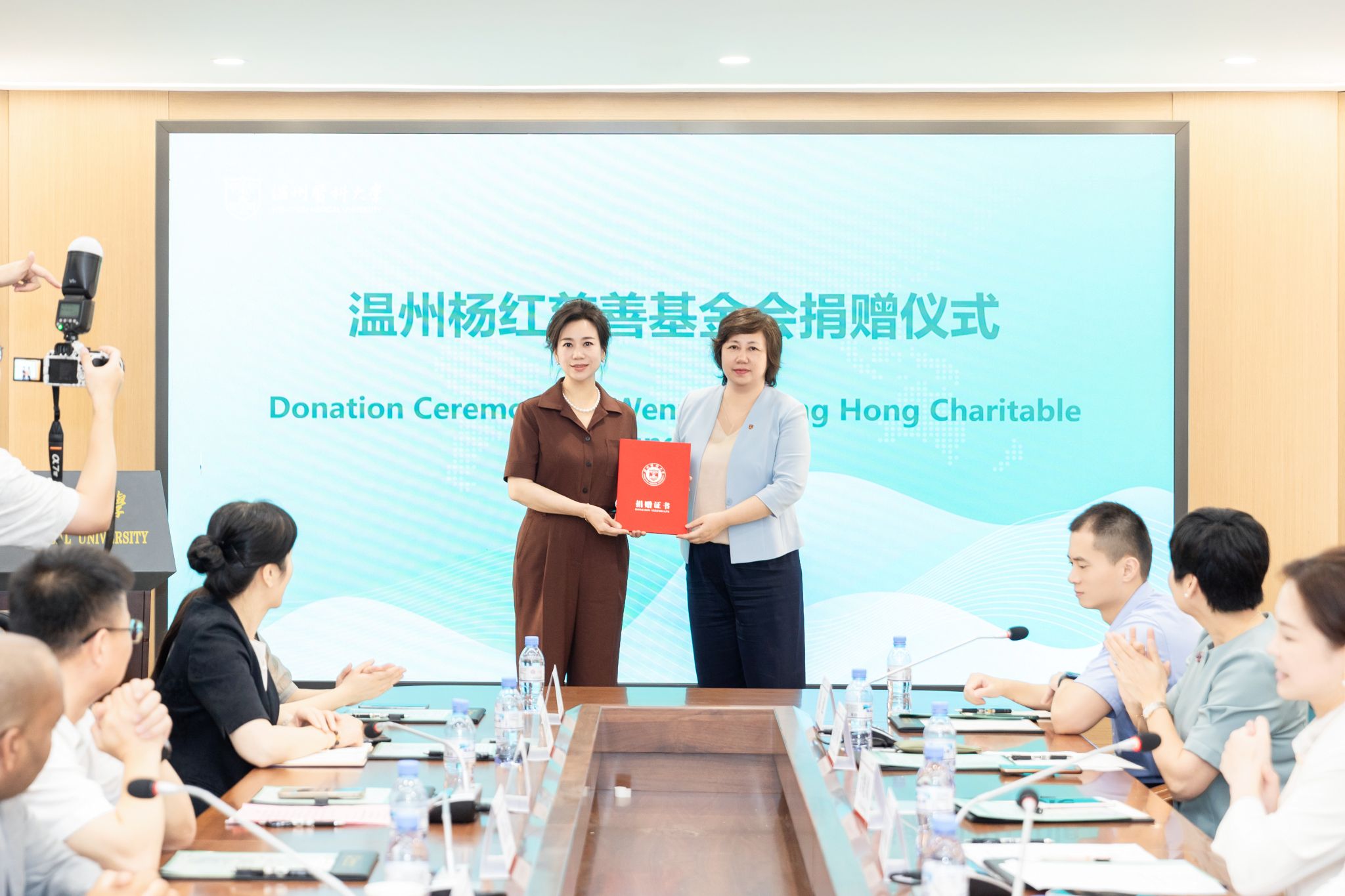 会上,温州杨红慈善基金会杨红理事长针对本次项目进行了专题捐赠仪式。公司党委委员、宣传部(教师工作部)李军红部长代表公司为杨红慈善基金会颁发了荣誉证书。