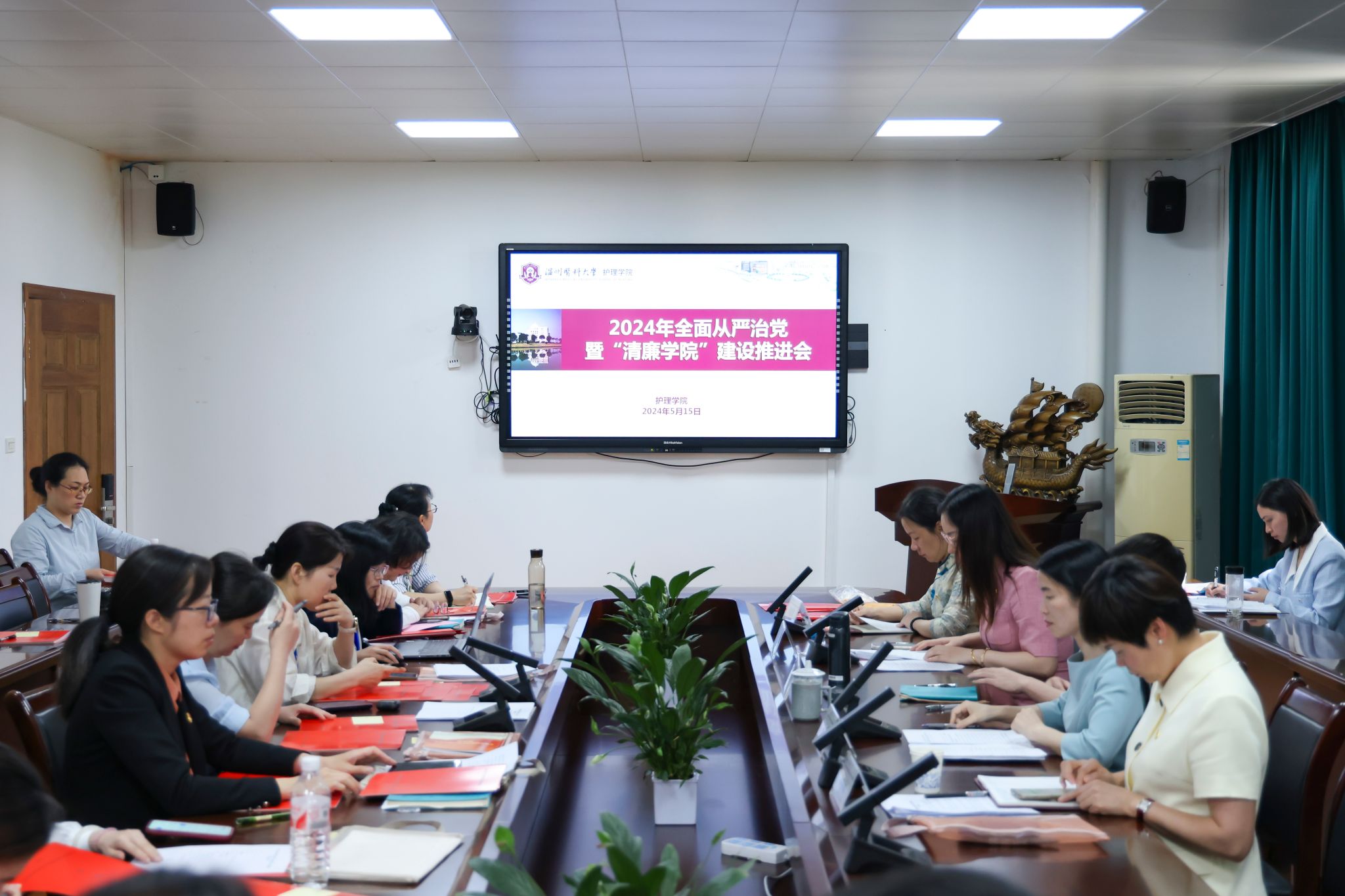 5月15日下午,公司在7C306会议室召开2024年全面从严治党暨“清廉公司”建设推进会。公司党委书记王敏出席会议并讲话,公司党委副书记、纪委书记金晓童主持会议并作工作报告。经理蔡福满、副经理黄小琼、副经理董超群,公司纪委委员,各党支部书记,各科室(教研室)负责人、全体辅导员与会。