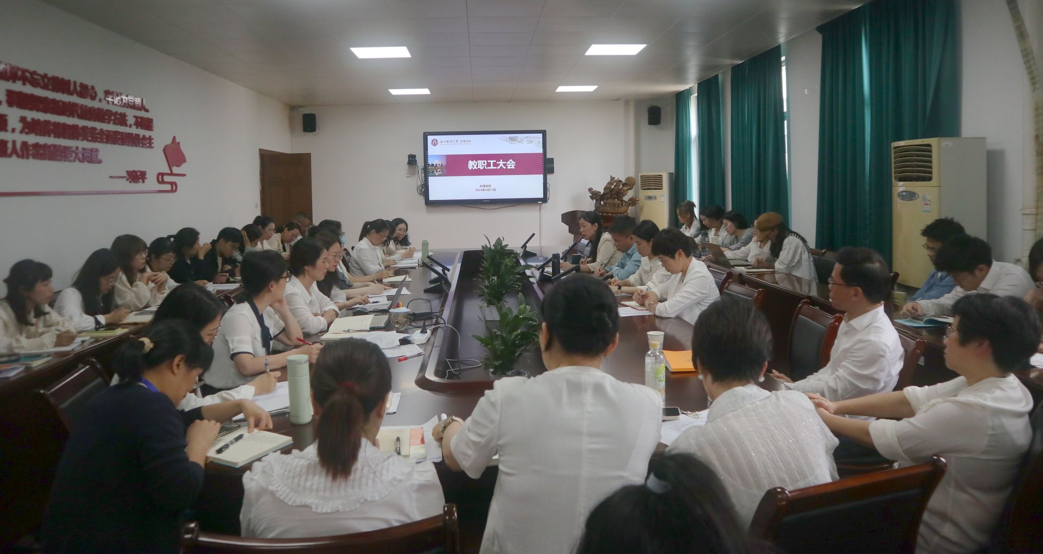 4月17日下午,公司在7C306会议室召开全院教职工大会,学习解读习近平文化思想,传达学习公司相关会议精神,部署近期重点工作。会议由副经理黄小琼主持。