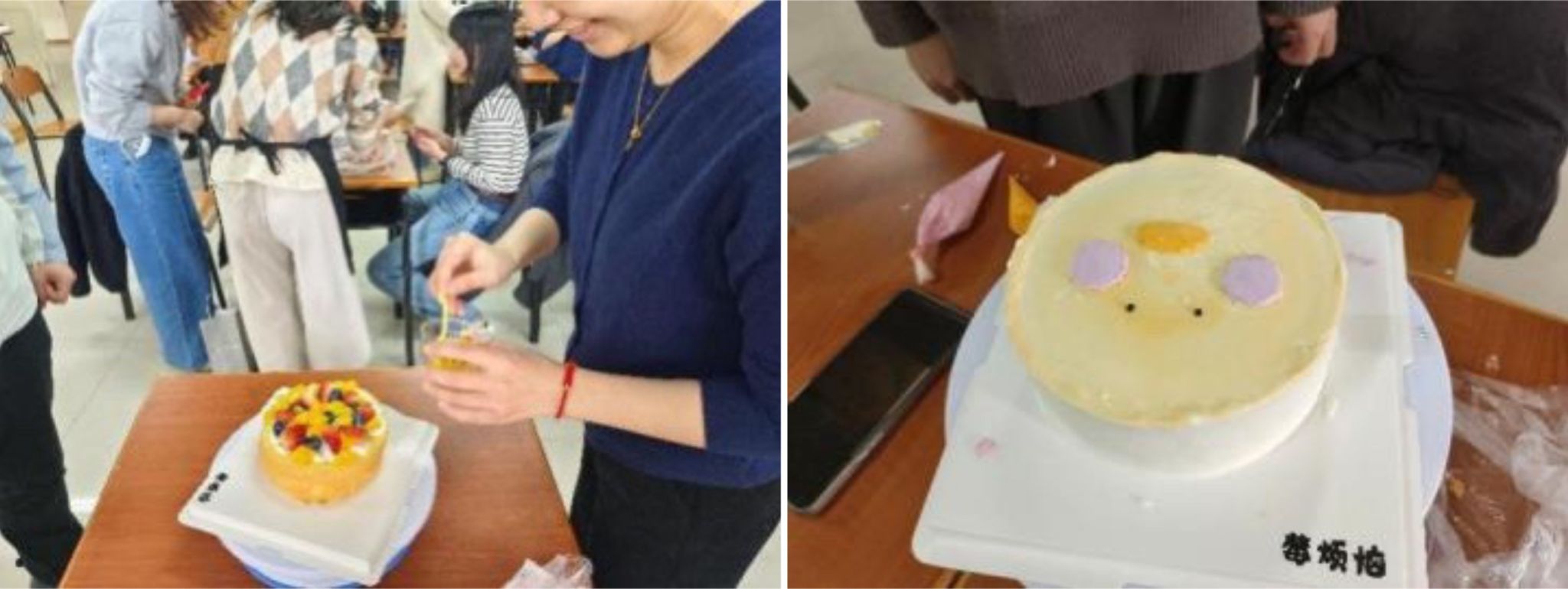活动开始前,公司研究生会为同学们准备了丰富的蛋糕制作原料,如蛋糕胚、奶油、水果等。在简单介绍蛋糕DIY活动流程后,大家纷纷动手开始制作。活动中,同学们充分展示自己的才能,以独特的设计理念和风格,制作出了精美的蛋糕作品。一些蛋糕上点缀着美丽的鲜花和糖霜,而另外一些则以简洁流畅的线条进行装饰,每位同学的作品都充满了个性和想象力。