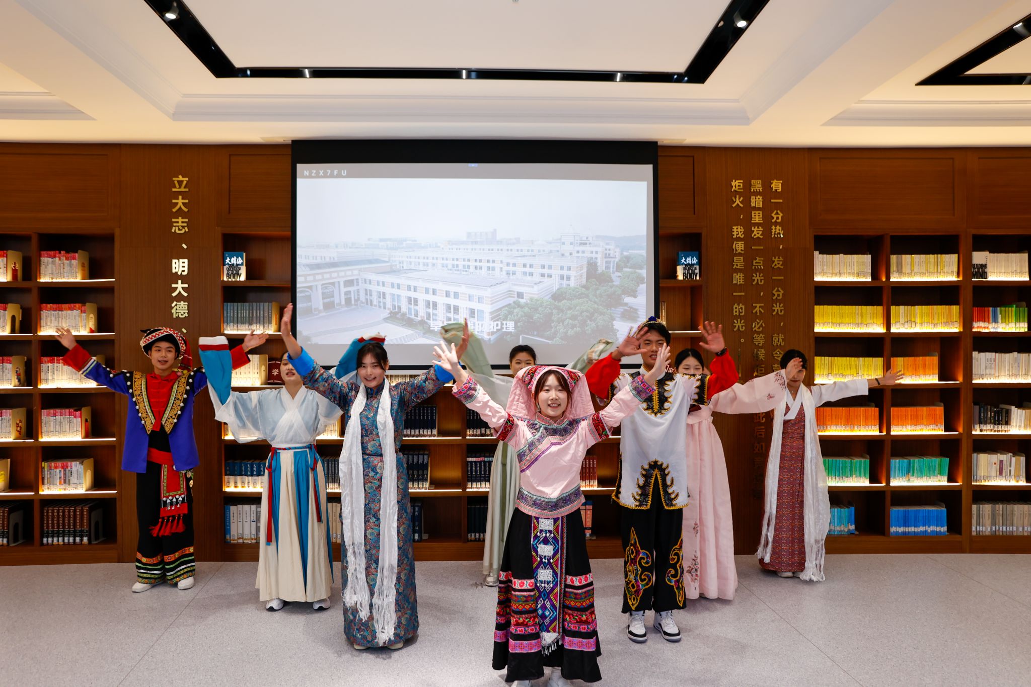 会后,全体师生在图书馆门前进行了集体合影。