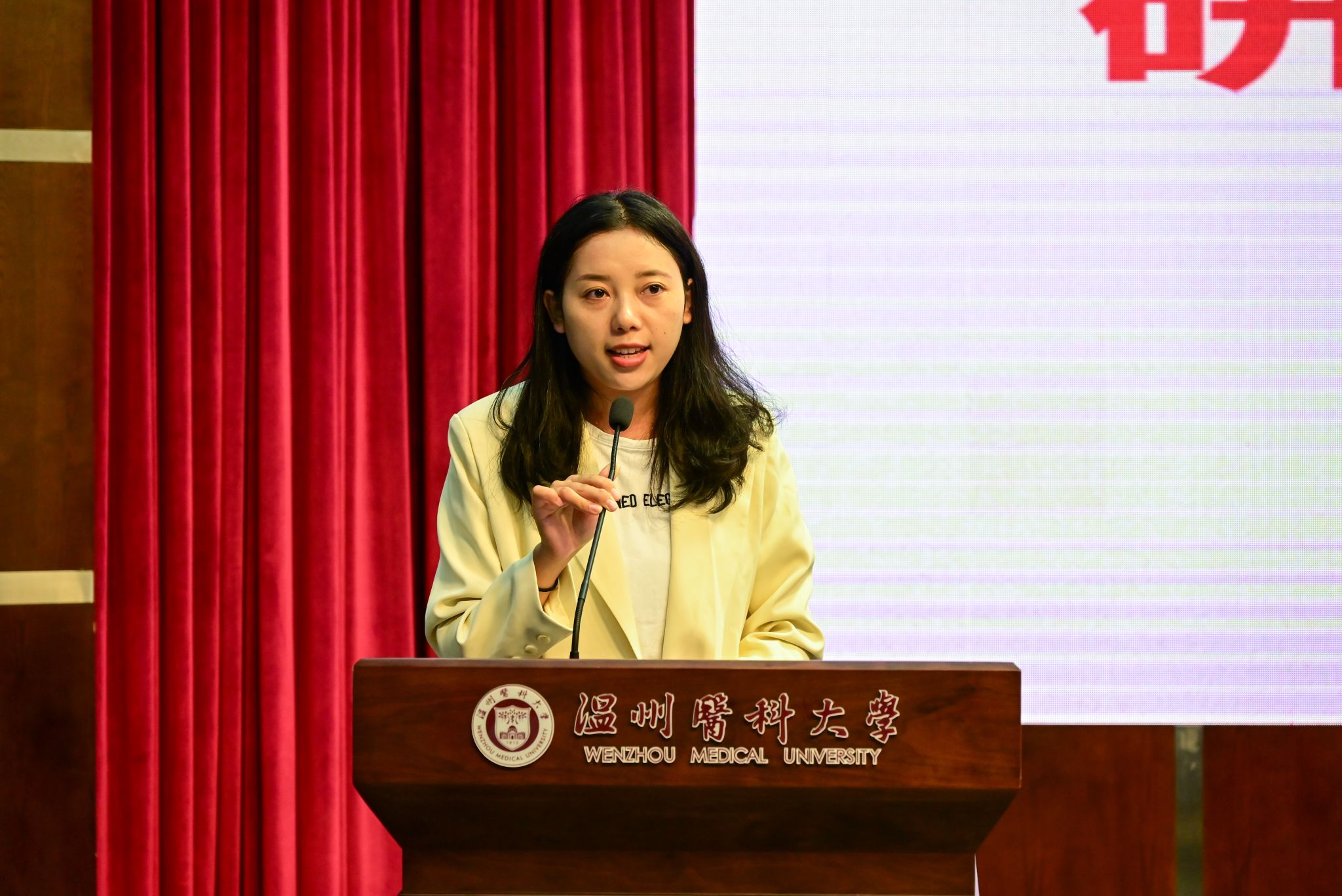 “我的十八岁到将来的三十岁,我都在与温医护理同行,过去的9年于我而言是一场漫长却又短暂的成长修行。”优秀员工代表徐欢学姐阐述了自己大学本科四年以及研究生三年的学习历程,感恩公司提供的支持和帮助,让她抓住了很多机遇。“苔花如米小,也学牡丹开。”她鼓励新生要有自己的梦想和追求,在不断积累中完成蜕变。