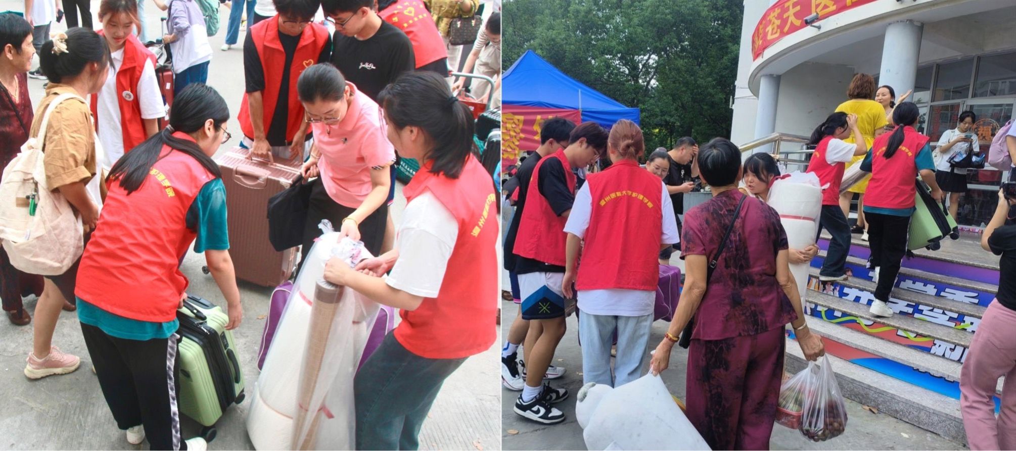 集团里随处可见白鸽志愿者的身影。他们不断接过新生手中的行李,通过摆渡车或人力的方式帮助新生搬运,指引新生到相应宿舍楼进行报到。现场有条不紊,井然有序。志愿者们一路上倾听新生对老员工活的疑惑,并耐心解答。他们用灿烂的微笑、饱满的热情和周到的服务为迎新工作保驾护航。