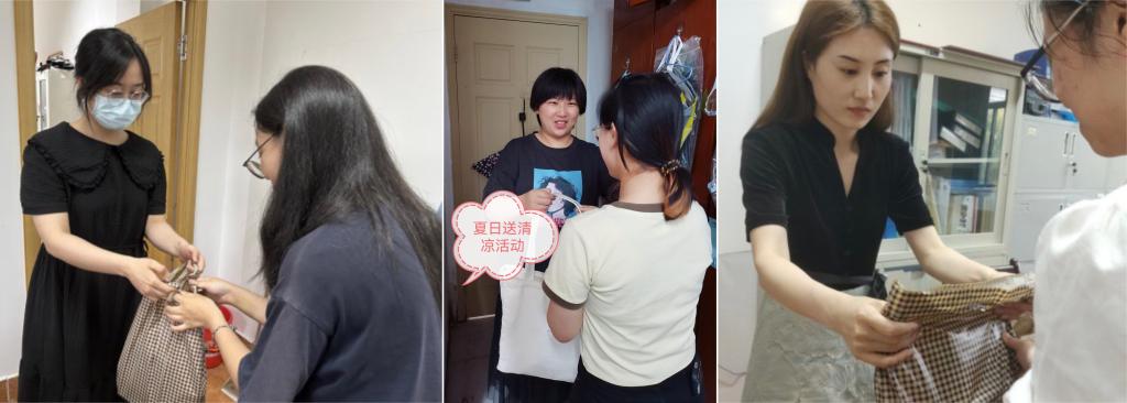经过前期的精心筹备,2020级的同学们收到了乳胶冰丝凉席三件套。开展活动期间,老师们带着夏日清凉礼包走向员工寝室,将精心准备的夏日清凉礼包亲手送到员工手上。2021级的同学收到了精心挑选的防晒衣和可爱的挂脖小风扇。2022级新生收到了小电扇、遮阳伞等,让员工在炎热的天气中感受到一丝清凉。在送清凉礼包的同时,老师们关注了解了同学们的生活学习情况,在谈心谈话时还回应了同学们比较关心的租房、实习、考研、就业等问题,把关怀真正送到了心坎里。