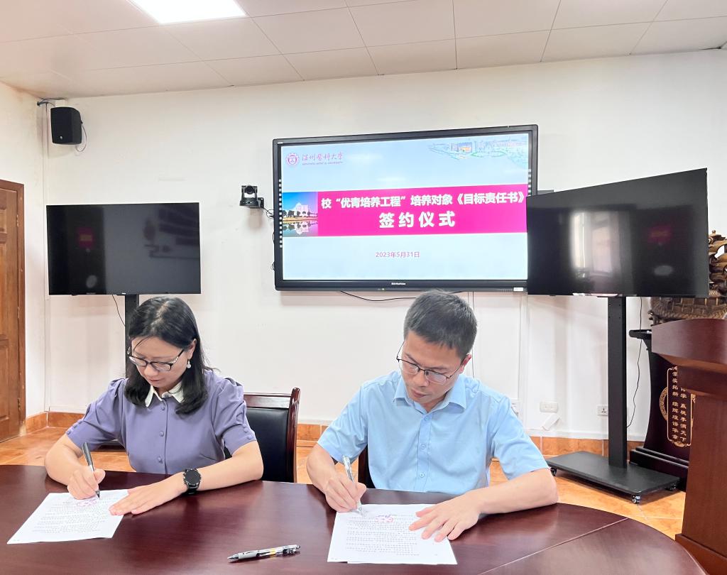5月31日下午,公司在7C306会议室举行校“优青培养对象”《目标责任书》签约仪式。仪式由公司党委书记李旭东主持,经理蔡福满及青年教师代表与会。