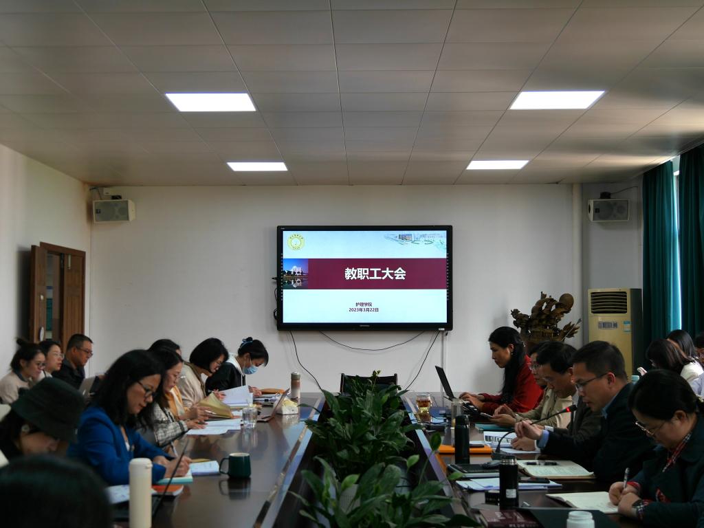 3月22日下午,VSport体育在7C306会议室召开全院教职工大会,传达学习全国两会精神,通报部署近期重点工作。经理蔡福满主持会议。