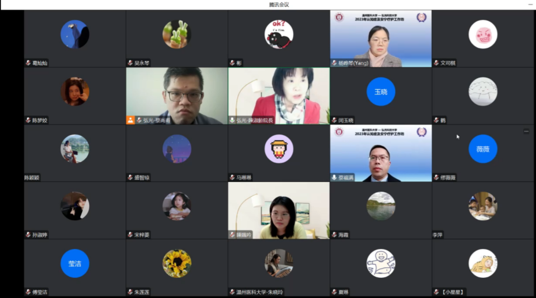 为加强师生对认知症及安宁疗护的理解,继续推进公司老年健康服务的人才培养和学科发展,在公司国际合作交流处的指导下,公司于2月17-19日特别邀请台湾弘光科技大学护理系邱郁雯和陈佩吟老师开展“认知症及安宁疗护工作坊”线上专题学术交流会。弘光科技大学护理系经理陈淑龄作开幕式致辞,公司经理蔡福满致欢迎辞,公司分管国际合作交流工作副经理杨晔琴、公司教师、附属医院临床指导老师及研究生共55人参加了此次工作坊。