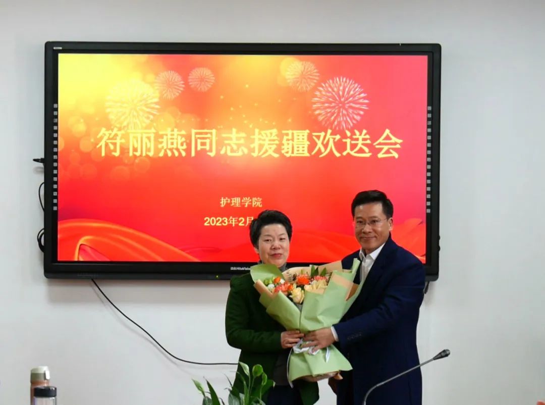会上,党委书记李旭东介绍了此次援疆工作的背景及要求,对符丽燕老师勇挑援疆重任表示感谢。他指出,援疆责任光荣、使命重大,援疆工作既是一项政治任务,又是一次宝贵的锻炼机会,希望符丽燕老师能不负重托顺利完成援疆任务,搭建两地合作的桥梁,成为两校发展的纽带,帮扶受援公司教师全面提高公司产品和管理水平,展现温医大护理人的风采,为公司、公司争光。