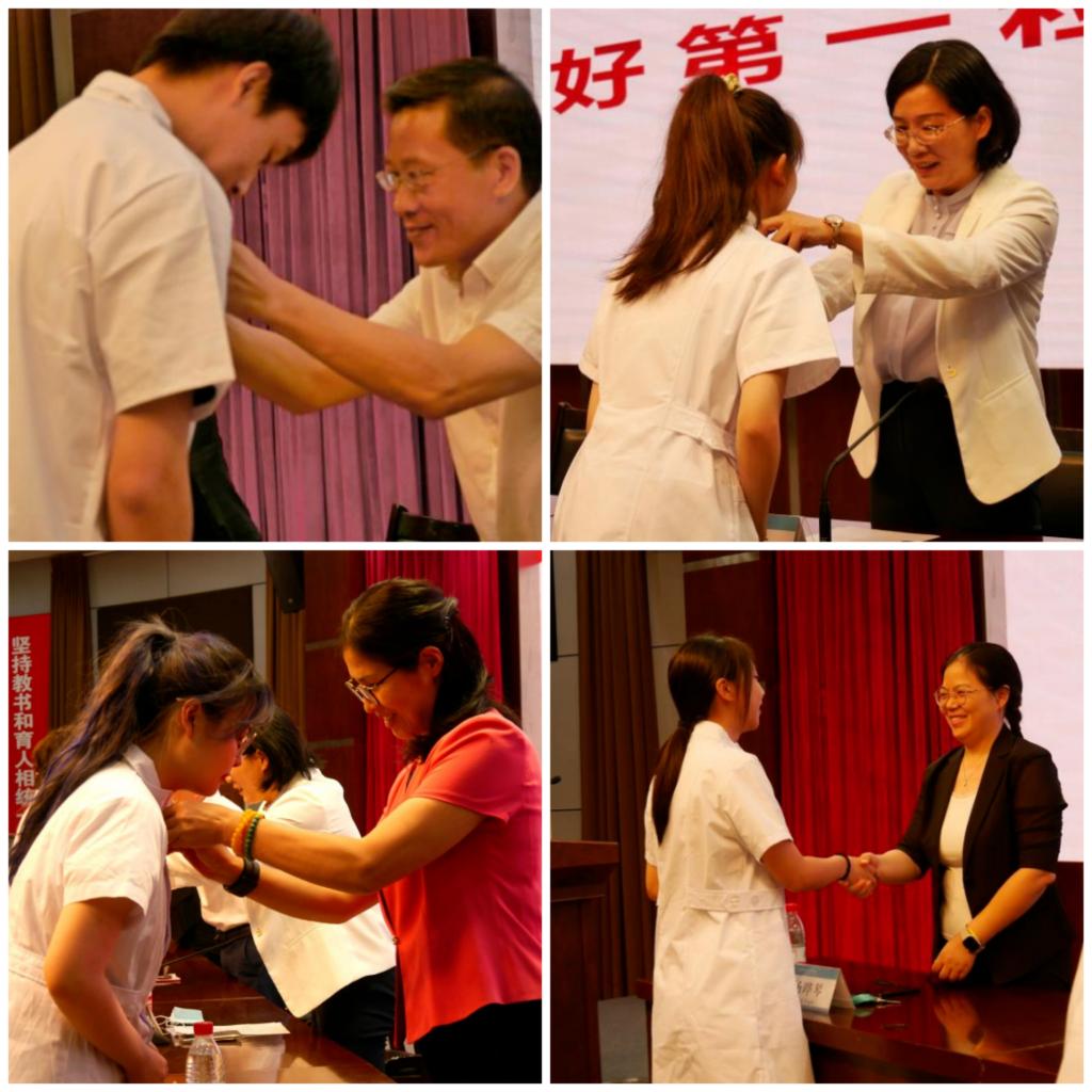 开学典礼上还设计了“扣好第一颗扣子”入学仪式,老师们为第一次穿上白大褂的新生代表们扣上第一颗扣子。“扣好第一颗扣子”仪式寓意着老师们对同学们的期望和祝福,也意味着同学们的责任和理想。愿同学们在未来的学习和工作之路都能记得这个第一颗扣子,同时树立正确的价值取向、崇高的职业理想。