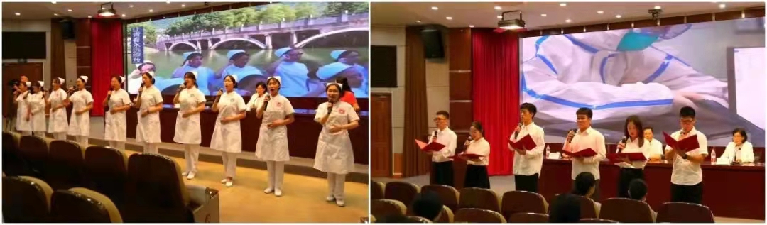 “新时代的护理人,我们的热爱要大声说出来”师生合作展示出铿锵有力的朗诵节目《与时代同行》。“中国护士,大爱无疆,用奉献浇灌生命,让生命永远绽放;中国护士,大爱无疆,用生命守护生命,让真情地久天长……”全体公司师生共同唱出心中梦想,激励自己向着光辉的目标齐头并进,典礼在悠扬动听的《中国护士之歌》中结束。开学典礼上,那一身身洁白无瑕的护士服,一双双坚毅清澈的眼睛都仿佛在昭示着对护理专业的无限期许。祝愿2022级全体同学都能传承弘扬南丁格尔精神,不忘敬佑生命、救死扶伤的初心和使命,踏实耕耘,为祖国医药卫生健康事业贡献出一份自己的力量!
