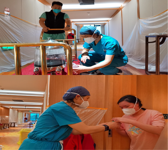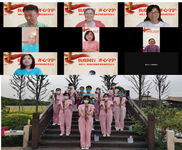在医公司党委书记褚茂平为首的领导们的关心与支持下,组织了以“抗疫同行,齐心守沪”为主题的“五一云联欢”活动、以“关爱护士队伍,护佑人民健康”为主题的国际护士节“云上慰问”特别晚会,线上的节目精彩纷呈,感人肺腑,让身处他乡的队员们也感受到了浓浓的节日仪式感和满满的归属感,很大程度上舒缓了队员们高强度的工作压力,增进了彼此间的感情。
