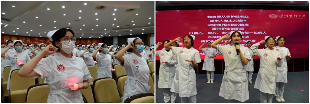 公司从1998年开始招收第一批护理专业员工,2000年开始便为每一位即将走上实习岗位的护理员工授帽。授帽仪式经过20多年的积淀和传承,已经成为公司生命教育文化的重要组成部分,旨在通过仪式让同学们不负人民期望、不忘护理初心,怀着一颗对生命敬畏的心,努力向临床一线的前辈学真本领、学大情怀,争做新时代的“南丁格尔”。