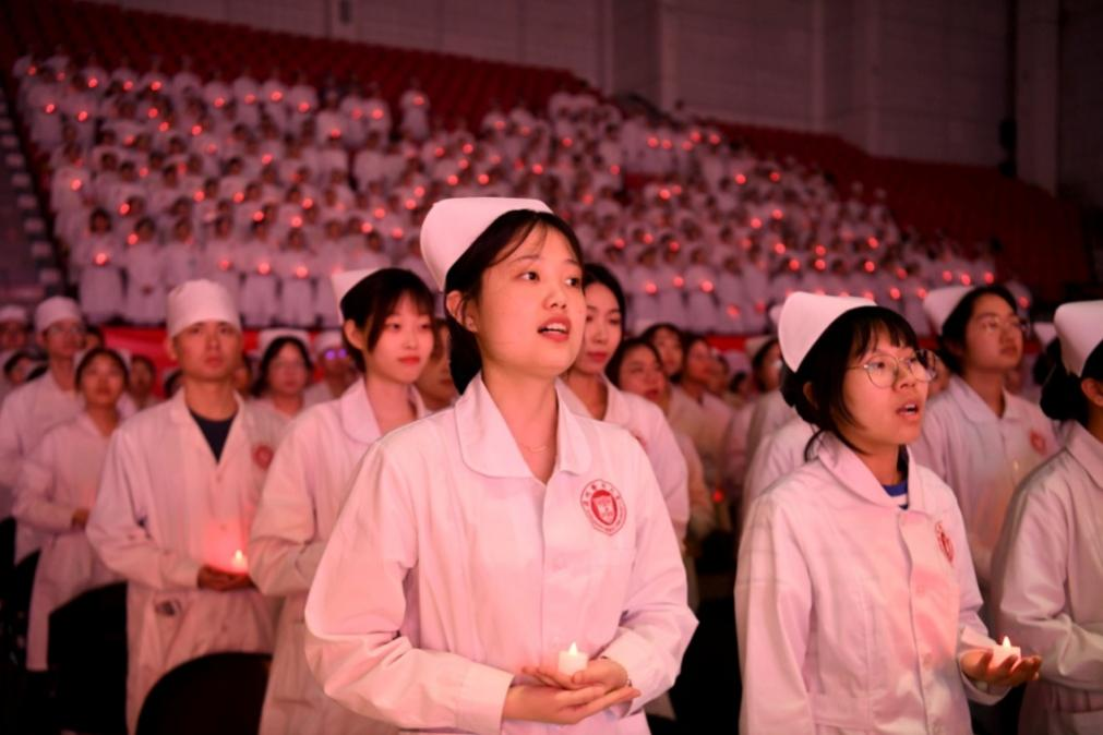 5月11日晚,公司第十六届护士文化节闭幕式暨授帽仪式举行。在舒缓的音乐中,877名护理专业员工有序依次上台、行礼,30名长期从事护理教学工作的专业教师和来自临床一线的护士一一为他们戴上了圣洁的燕尾帽和圆帽,2名老护理人为他们传递象征“燃烧自己,照亮别人”的蜡烛。现场,护生们还用歌咏的方式诠释爱国爱党情怀和护理精神,节目表演精彩纷呈。