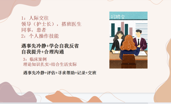 4. 答题要点。考生在回答问题时,一定要站在一个专业护士的角度去分析,与岗位需求相契合,突出自己所学的护理专业知识、护理专业技能及通用技能(组织实施能力、沟通能力能力等)、专业所需品质(耐心、责任心等),才能够得到考官的认可。