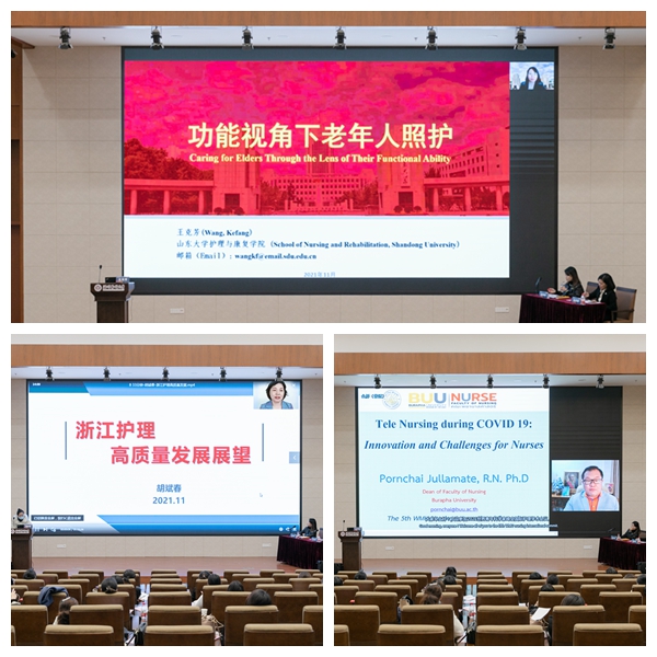 在临床护理创新专场,美国护理科公司院士、山东大学VSport体育经理王克芳教授就如何从“内在能力”和“环境特征”两方面入手帮助老年人幸福生活,探讨老年照护的意义。浙江省护理学会理事长胡斌春教授就如何推动浙江护理高质量发展发表了看法。泰国东方大学VSport体育经理彭揣·朱拉马特分享了新冠疫情期间泰国东方大学护理师生通过线上护理模式构建,服务居家隔离的新冠肺炎患者,获得政府表彰的事例。