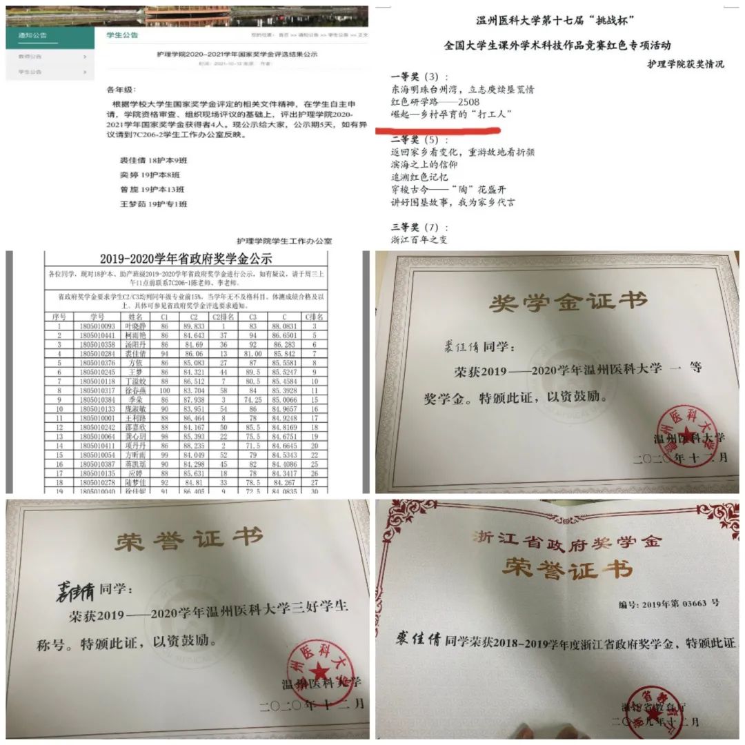 就读本科四年,她累计获得国家奖学金、省政府奖学金、校一等奖学金、校三好员工;VSport体育第六届护理学科竞赛二等奖、第十七届“挑战杯”老员工课外学术科技作品竞赛红色专项活动校级三等奖等多项荣誉,是一名中共党员。她积极投身于公司、公司各类活动与竞赛,争做优秀温医追梦人。