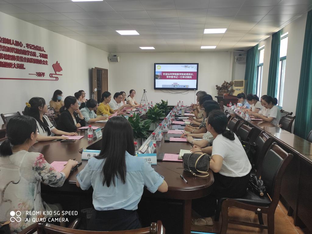 8月26日下午,台州公司医公司梁勇经理、李仲斐书记等一行17人来公司交流。公司党委委员、教务处处长朱雪波,公司党委书记李旭东、副书记周恩红、副经理杨晔琴、各教研室、实验室主任,附属第一医院护理部孙彩霞主任、广化社区罗茶兰主任、教学办公室工作人员参加了交流会。朱雪波对台州公司一行表示了热烈的欢迎,交流会由李旭东主持。
