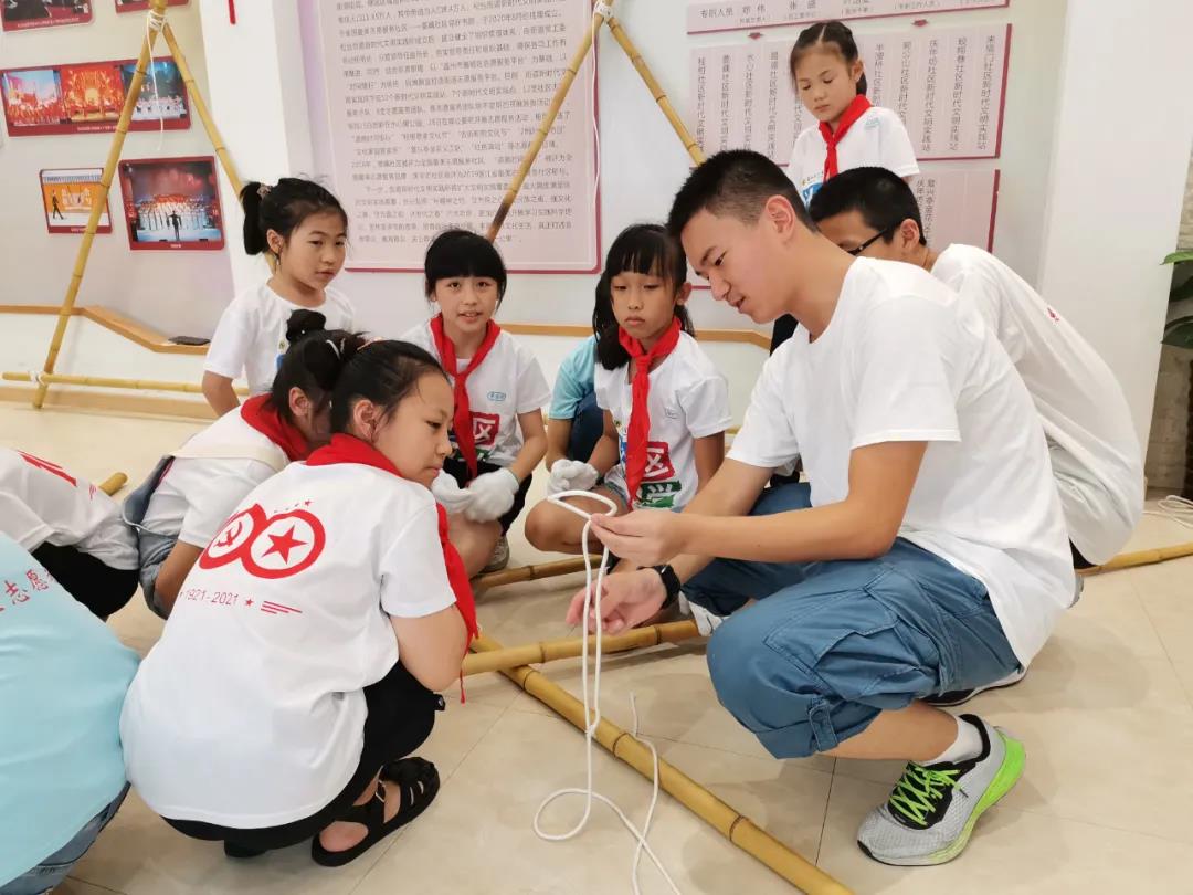红领巾研学营是团温州市委将老员工暑期社会实践与“暑托”相结合的创新举措,旨在依托市少年宫的等校外教育资源,积极引导暑期回温老员工走进社区,为在温工作和务工等人员子女提供“暑托”服务。为期五天的红领巾研学营,重点将红色文化浸润贯穿始终,让参与志愿者受到红色洗礼,让参与青少年得到红色熏陶。