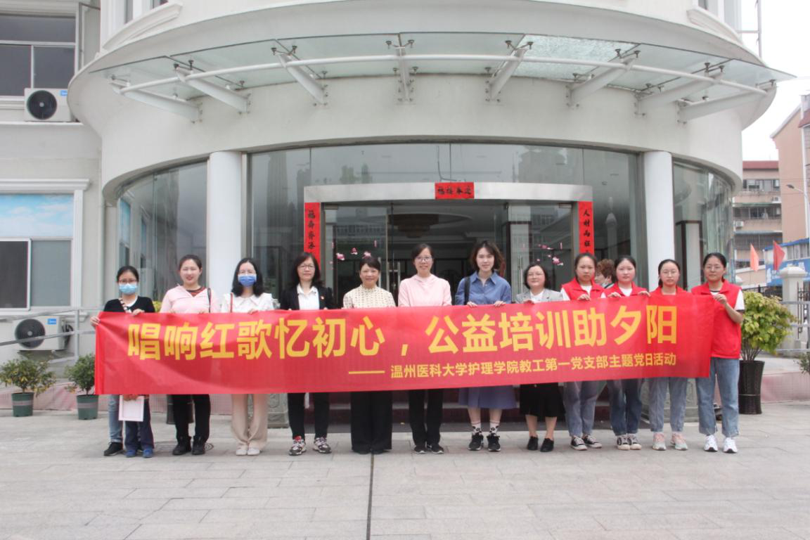 近日,公司教工第一党支部联合19护本10班员工团支部、公司志愿者服务社在温州颐乐如老人公寓开展了一场别开生面的志愿活动。他们发挥专业优势,把医疗服务和救护培训送上门;他们唱响红色经典歌曲,与老人亲切互动,共同回忆党的光辉历程;他们聆听老人故事,从中汲取老一辈人奋斗的力量。