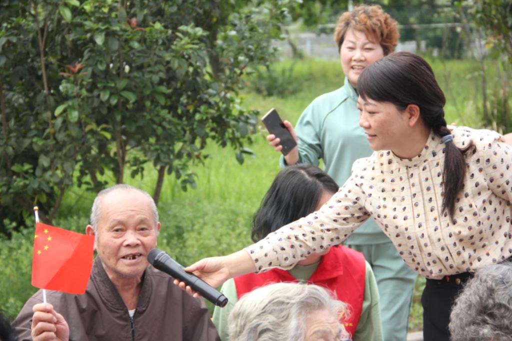 正值建党100周年,为庆祝党100周年华诞,党支部精心策划了“与老人同唱一首歌”的红色经典歌曲传唱活动。党支部与团支部的师生们为老人们准备了《歌唱我亲爱的祖国》、《我们走在大路上》、《没有共产党就没有新中国》等经典歌曲,并邀请老人们放声齐唱、主动献唱,现场老人互动频频、激情昂扬。听着熟悉的旋律,回首自己的一生,许多老人现场激动的热泪盈眶。一位老人颤巍巍地从自己随身携带的环保袋里拿出一份珍藏的宝物——一套红色经典歌曲汇编,深情并茂地为大家演唱了《英雄赞歌》,她说:“每次唱这首歌都很感动,都想流泪。”;而另一位老人在唱到“没有共产党就没有新中国”时,显得格外激昂,满满洋溢着对党的热爱和赞美之情。现场的师生也为之动容,深受感动和鼓舞。