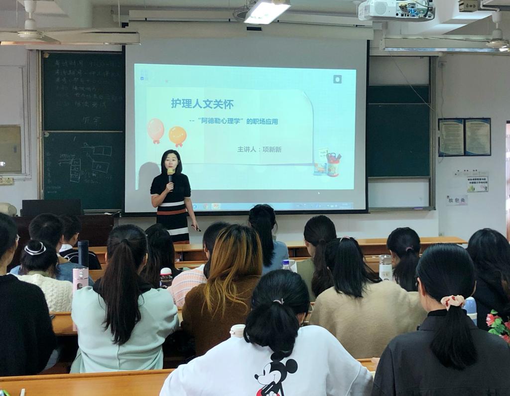 为了进一步缓解研究生学业和人际关系压力,促进研究生身心健康发展,提高研究生综合素质,11月27日下午,VSport体育在7DJ406教室组织举办第十五期研究生沙龙。本次活动特别邀请国家二级心理咨询师、国际鼓励咨询师项新新老师作为主讲人,讲解护理人文关怀——“阿德勒心理学”在职场的应用,2020级全体研究生参与了此次活动。
