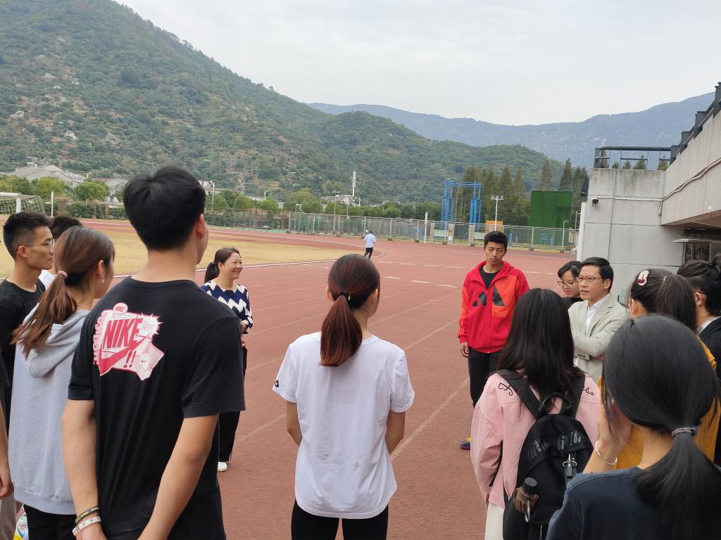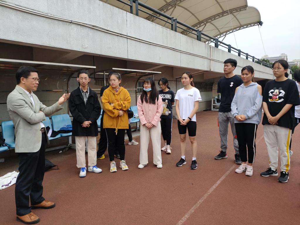 10月29日上午8点半,公司党委书记李旭东、副书记周恩红以及公司辅导员老师前来田径场慰问训练中的运动员们。