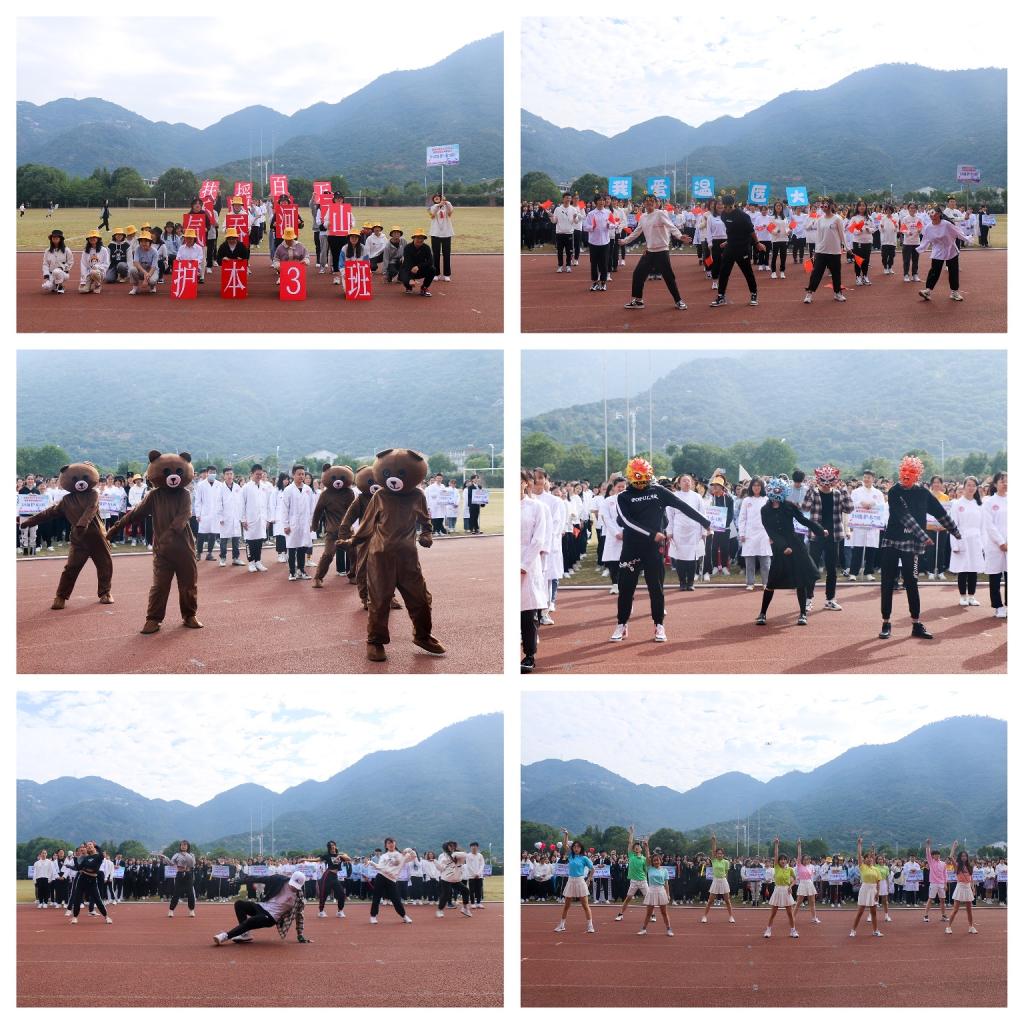 “大风泱泱,大潮滂滂。专一专一,勇夺第一。”“十二十二,说一不二。放眼温医,舍我其谁”“青春如火,超越自我。四班精英,勇夺第一。”……伴随着响亮的班级口号,20个新生班级方队斗志昂扬得进场了。来到主席台前,有的班级通过朗诵展现新生的雄心壮志,有的班级通过热舞展现新生的青春力量,有的班级则穿上可爱的布朗熊玩偶服热情得向在场的师生们问好,也有的班级邀请到导师参与方阵展示,成为跑道上一道亮丽的风景线。每一个新生班级都创意十足,洋溢着青春似火的朝气。随后,公司艺术团带来的舞蹈《我们都是追梦人》更是将趣味运动会气氛推向了高潮。