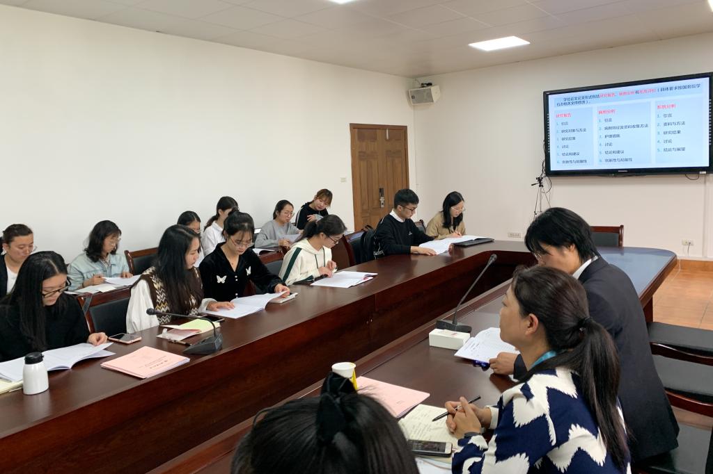 张春梅副经理就护理硕士(专业型)、护理学(学术型)硕士公司产品方案向研究生新生作系统分析解读,张春梅指出,公司在国务院学位委员会《护理硕士专业学位基本要求》指导意见下,借鉴中外护理学硕士研究生联合培养经验,结合国家卫生健康委《新护士入职培训大纲(试行)》要求,多番征求专家、教授讨论,改革护理硕士专业学位公司产品方案,努力培养公司研究生成长为有情怀、有自信、能做事、能创新的高级护理实践人才。