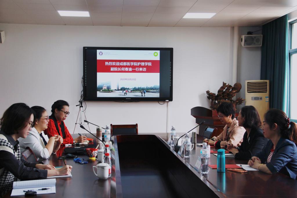 10月20日上午,成都医公司VSport体育副经理何春渝一行来院访问,公司副经理杨晔琴、教学办主任孙海琴以及相关人员在7C306会议室接待了来访客人。