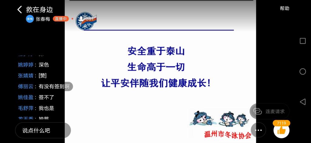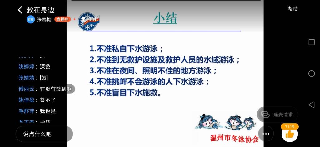 近日,我国多地出现大员工溺水事故。为进一步强化员工暑假安全教育工作,帮助员工树立安全意识,7月16日下午公司学工办联合教工第一党支部举办“预防溺水、救在身边”主题直播讲座,特邀温州市冬泳协会荣誉主席、公司副经理张春梅老师面向全院员工讲授暑期防溺水救护知识。