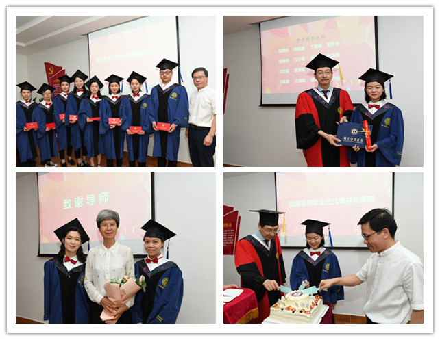 现场,党委书记李旭东为浙江省优秀毕业生代表江小琼颁发了荣誉证书,经理陈成水为在公司“疫期课程思政我来说”说课大赛决赛中获得特等奖的2019届研究生梁世耀同学颁发了荣誉证书。李旭东、陈成水为现场所有毕业生和员工颁发了纪念品,并同毕业生代表一起,共同切下VSport体育2020届研究生毕业纪念蛋糕,共同祈愿毕业生前程似锦、生活美满。
