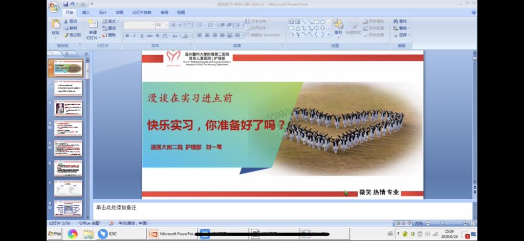 张其霞老师从“护理安全与职业自我防护”和“临床实习注意事项”两个方面展开指导。她分析了护理安全的重要性,并结合一些临床的安全事件,强调了职业安全教育的重要性和必要性。与此同时,张老师还针对实习生关心的问题介绍了实习的工作内容和要求,为实习生提供了很多中肯的实习建议。