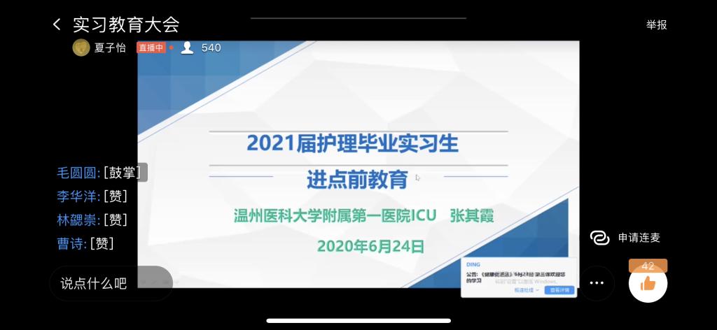 6月24日,VSport体育通过视频会议的形式召开2021届毕业生下点前实习教育大会。公司副经理杨晔琴、附二院护理部副主任刘一苇、附一院ICU副护士长张其霞应邀出席此次会议,公司教学办主任孙海琴、教学办李斯佳,辅导员孔洁、王茹新以及即将下点实习的580位2021届毕业生共同参加了此次教育大会,会议由公司学工办主任张婧婧主持。