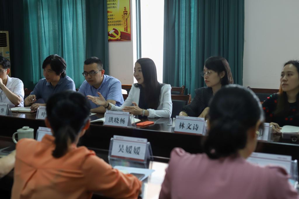 会上,李旭东书记对校团委领导一行的到来表示欢迎。洪晓畅书记发表讲话并明确了本次来访的目的,她表示,此次调研,一是希望公司团委和校团委能够深入沟通交流工作;二是希望校院团委能一起谋划一些创新创业项目、志愿服务项目等,三是借此机会希望二级公司对校团委工作提出建议和意见,并以期工作更好更顺利地开展。团委副书记吴媛媛从公司基本情况、主要工作及工作思考三方面进行汇报,并具体从思想育人、实践育人、文化育人和双创育人四个方面介绍了团学工作内容。汇报之后,各位领导展开了团学工作指导交流。校团委叶圣副书记针对志愿服务项目提出“三大聚焦建议”——服务对象聚焦、服务内容聚焦和服务成果聚焦;林文诗副书记则提出要把有意义的事情做得有意思,激发团支部的力量做好团学工作。校团委书记洪晓畅对VSport体育团委工作进行了肯定,并希望公司能做好文化品牌方面的工作,凝聚广大青年力量,提升团支部活力,让更多员工参与进来。