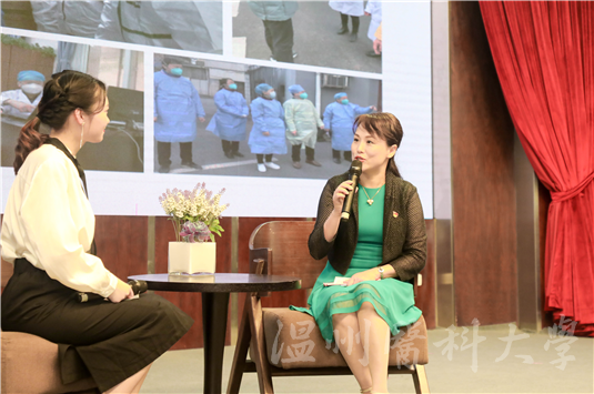 国家感染专家组成员,温州市人民医院院感科科长兼市院感管理质控中心常务副主任、主任护师吴红梅,浙江省首批援鄂医疗队普通护理组组长和医疗队护士长、附属第一医院护士长郑秀云,附属第二医院、育英儿童医院瓯江口院区104病区护士长刘一苇受邀来到现场接受访谈,讲述了她们在抗击疫情一线的感人故事。