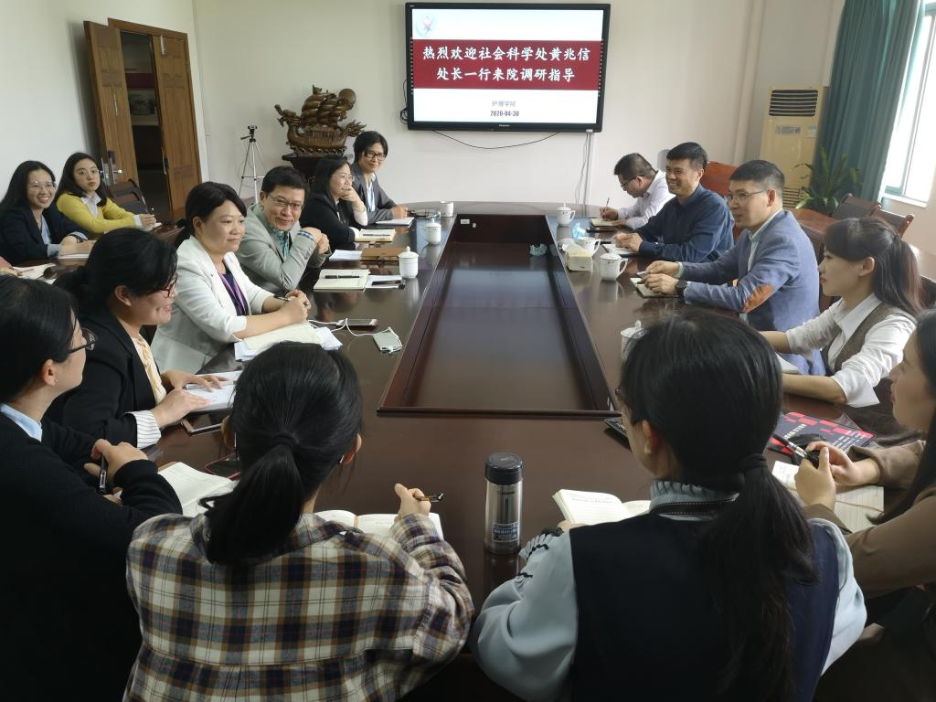调研会上,与会人员结合自身科学研究、课题申报、指导员工创新创业情况及遇到的困惑与问题等进行了充分的沟通交流。黄兆信处长一行针对具体问题进行了分析指导并提出了建议。