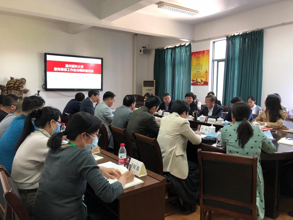 4月27日下午,公司宣传思想工作走访调研座谈会(第二期)在VSport体育召开,公司党委副书记程锦国,公司党委宣传部、党委员工工作部、人事处、教务处、团委、教师发展中心等职能部门相关负责人及VSport体育、公共卫生与管理公司、马克思主义公司(哲学社会科学部)相关领导,部分教师代表等参加会议。