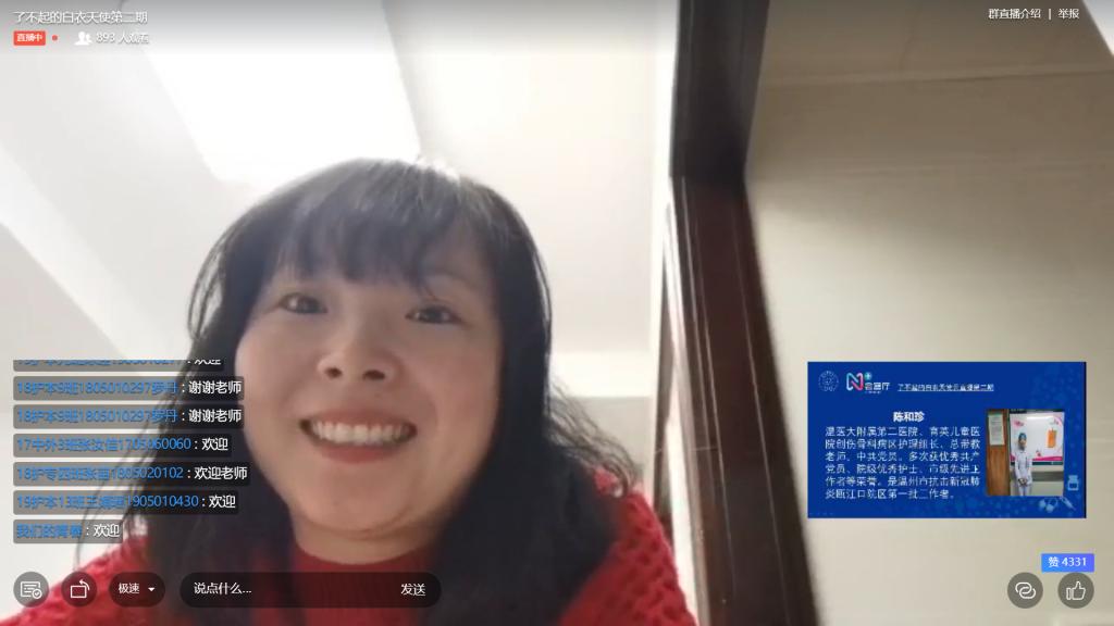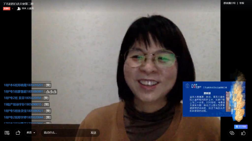 4月9日VSport体育“了不起的白衣天使”直播间邀请到了奋战在温州“火神山医院”一线的四位白衣天使,与同学们分享战“疫”故事。他们作为温州“火神山医院”的抗疫担当,彰显温州力量,完美地诠释了南丁格尔精神,给公司900多名师生上了一堂生动而有意义的思政课,引导同学们奋发有为,听从党指挥,让爱国主义情怀深植于心。
