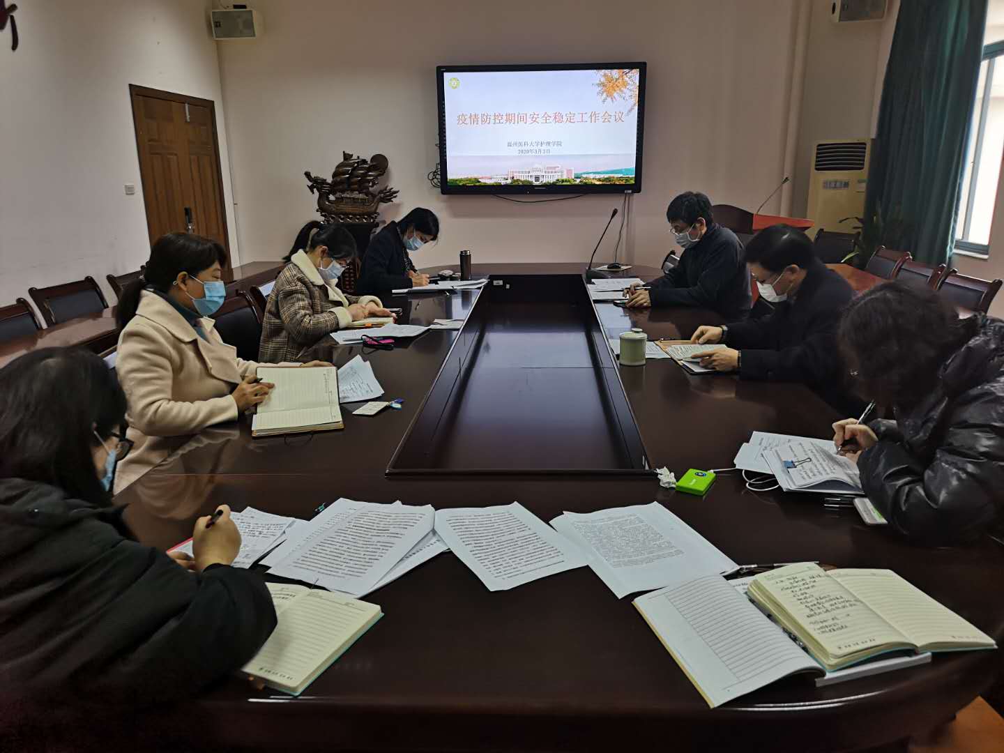 会上,各分管领导和相关科室负责人就公司近期疫情防控宣传教育、信息摸排、云思政、在线教学、创新创业、毕业生就业、学科评估、研究生教育及中泰硕士教育项目等各项工作开展情况进行了汇报,并就下阶段重点工作开展提出了思路和建议,画出了2020年各月工作路线图。会议还通过了《VSport体育进一步加强疫情防控期间安全稳定工作的通知》。