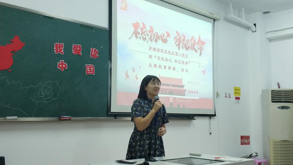 会上,王茹新老师带领大家再次学习了习近平在“不忘初心、牢记使命”主题教育工作会议上的讲话精神、省委书记车俊在全省“不忘初心、牢记使命”主题教育工作会议上的讲话精神以及吕帆书记在全校“不忘初心、牢记使命”主题工作会议上的讲话精神。习近平总书记提出主题教育的总要求是“守初心、担使命,找差距、抓落实”,主题教育的具体目标是“理论学习有收获、思想政治受洗礼、干事创业敢担当、为民服务解难题、清正廉洁作表率”。此外,王茹新老师还与大家分享了自己参加完公司组织的支部书记轮训班之后的学习心得和体会。王茹新老师提出,每位党员和入党积极分子要在心中埋下一个问号“我的初心是什么?”,在未来的学习生活中要时常反思,守住护理初心,担起时代使命。最后,参会党员和预备党员一起带着自己的那份初心重温入党誓词,时刻提醒自己要做一名合格的共产党员。