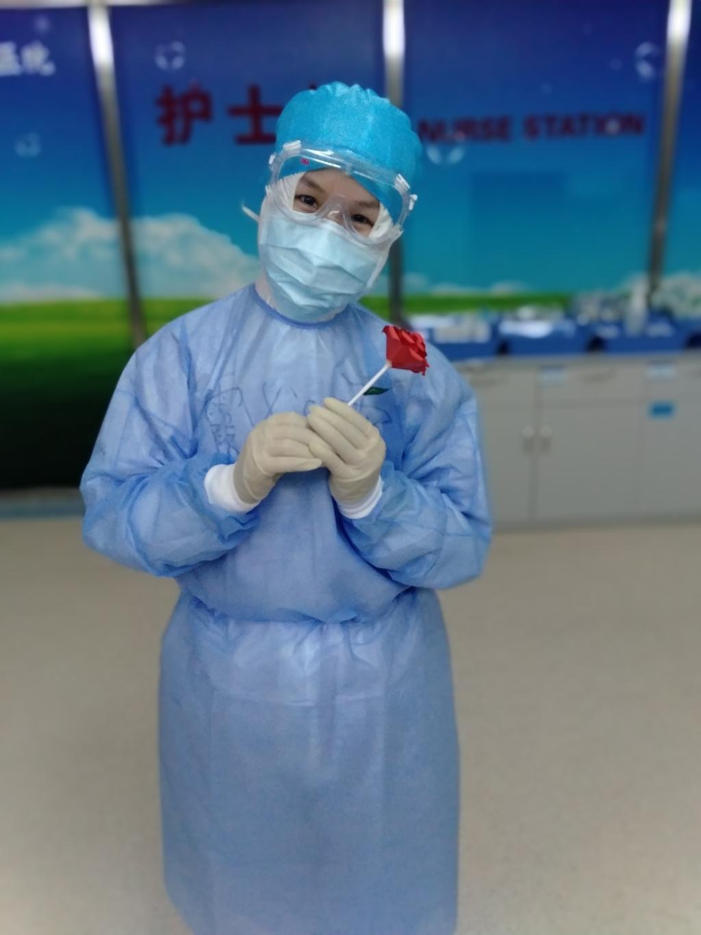 胡丹红,2003届护理学子,公司附属第二医院呼吸科护士。1月22日,她听护士长说需要2名护士支援武汉,就毫不犹豫地报了名,“这是一种情怀也是一种责任,”她说,家里人也很支持她的决定。1月25日,大年初一,早上七点醒来,接到医院护理部的通知,说八点就出发,收拾行李的时间只有一个小时,爱漂亮的她还洗了个头发。作为浙江省第一批驰援武汉的医疗队员,她被分配在武汉第四医院(普爱医院),在隔离病区内当一线护士,担任护理组长,同时作为心理咨询师,积极给队员和有需要的患者做心理干预工作。